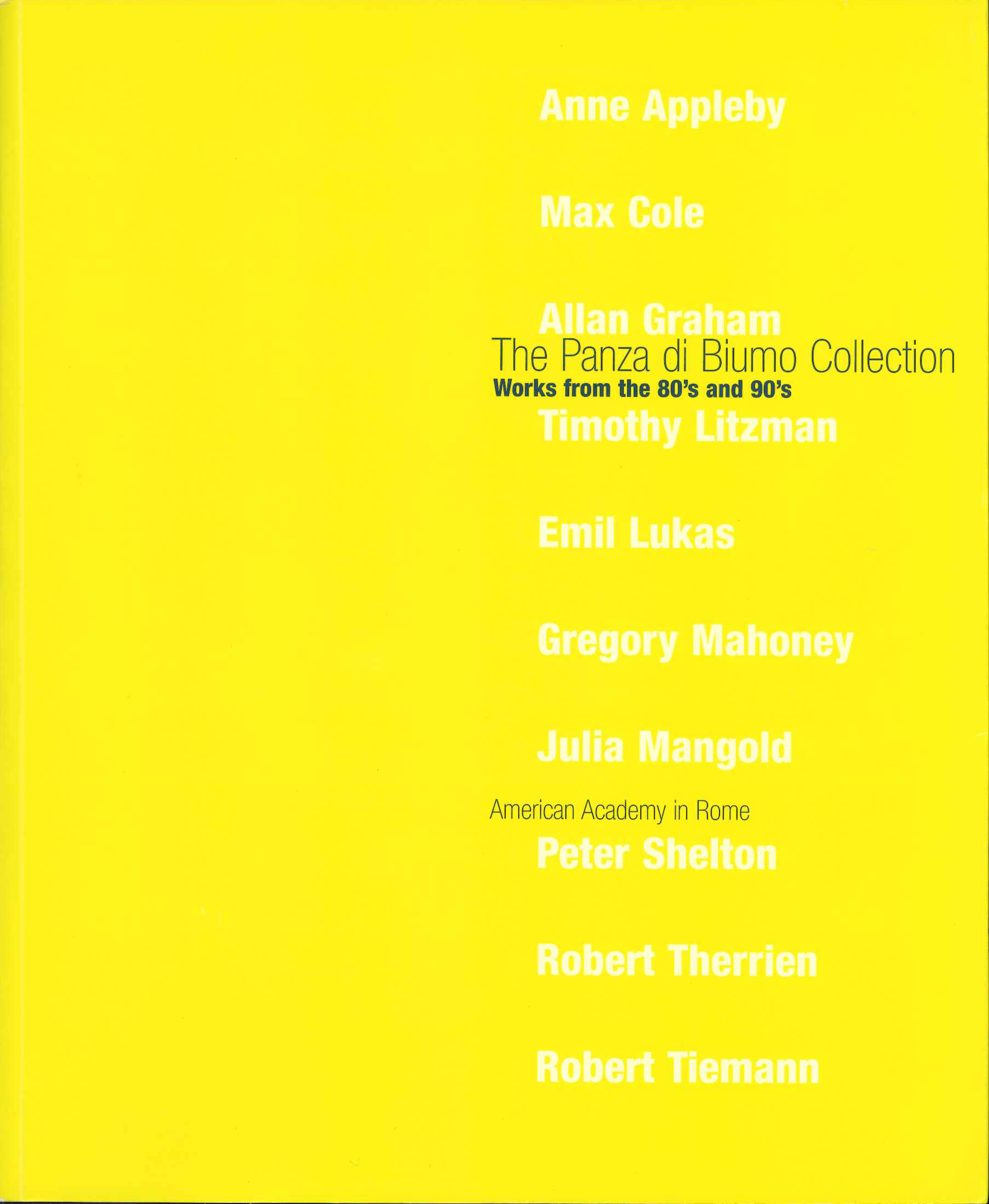 Marc Bowditch (ed.), The Panza di Biumo Collection. Works from the 80’s and 90’s, American Academy in Rome, March 10 - May 21, 2000, American Academy, Roma 2000 (bilingual edition Italian and English).
